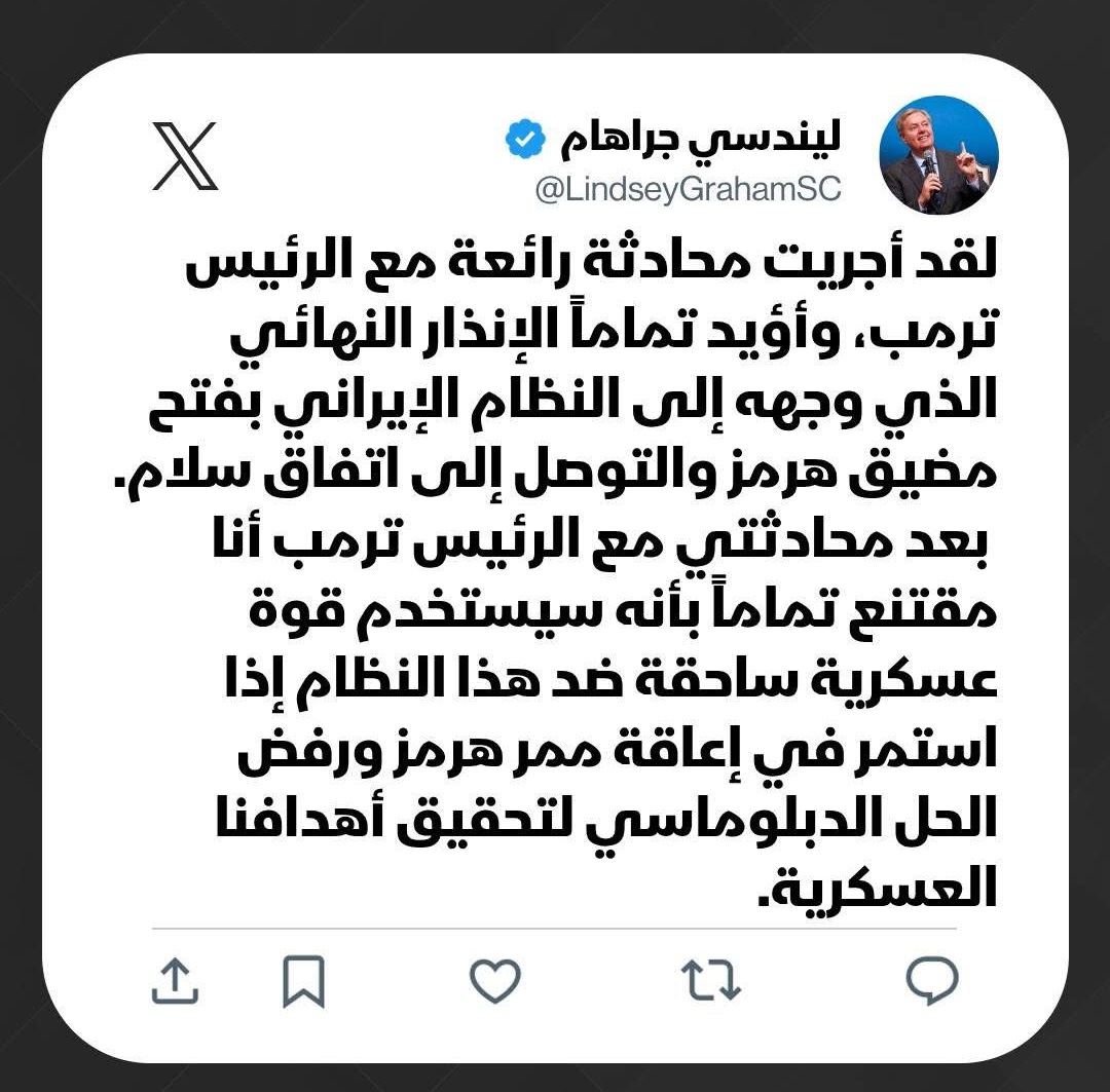 ليندسي غراهام: سنستخدم قوة عسكرية ساحقة مع ايران