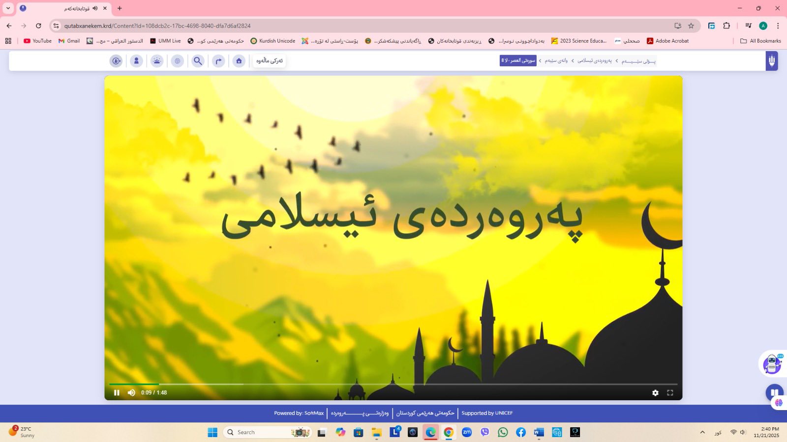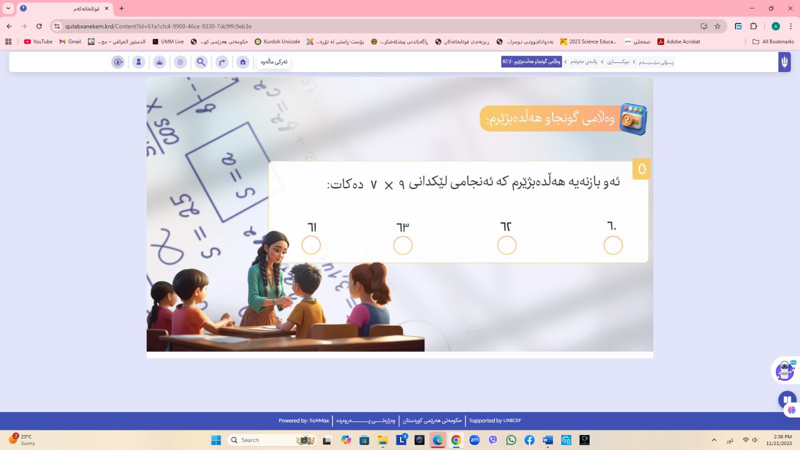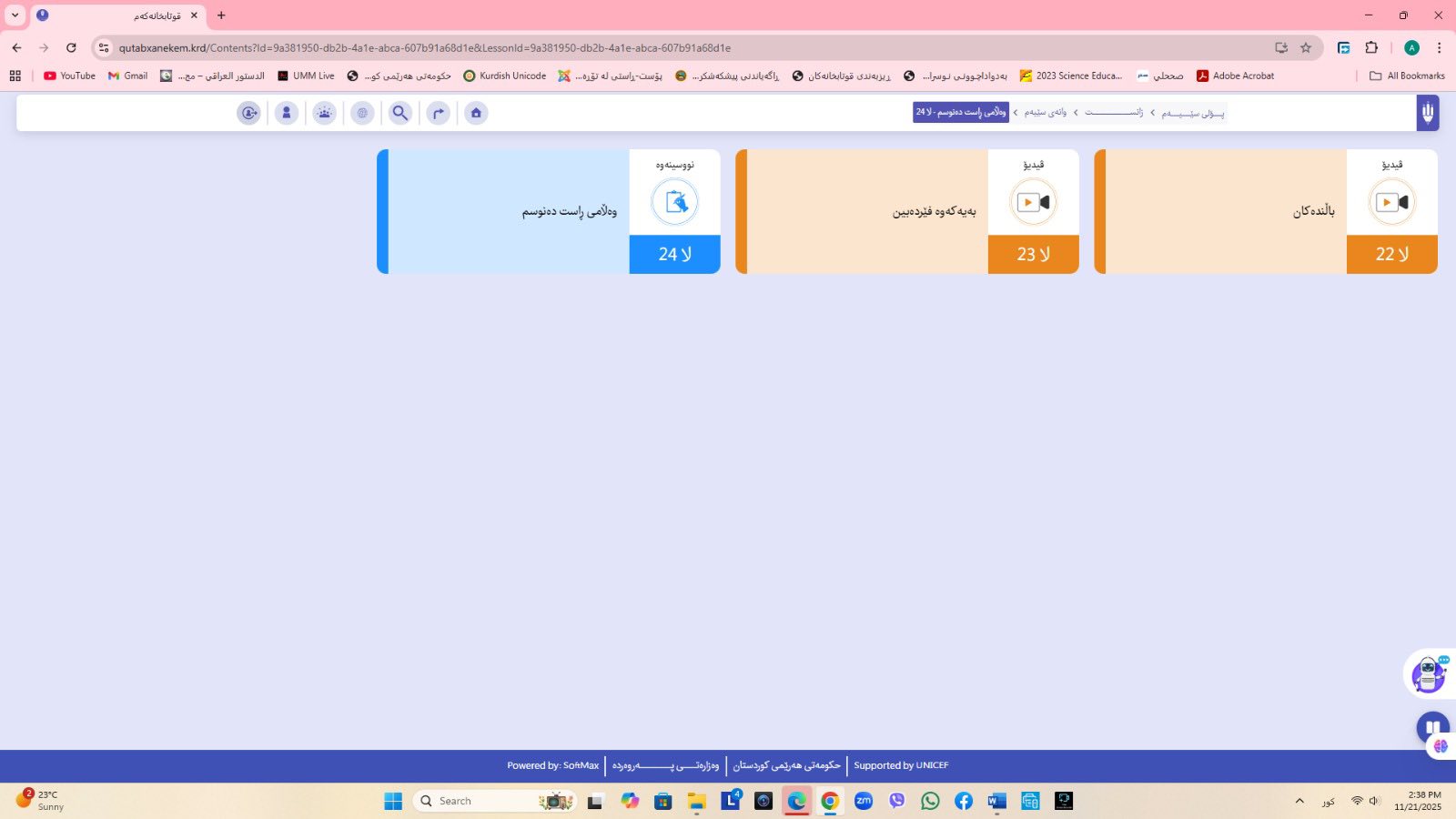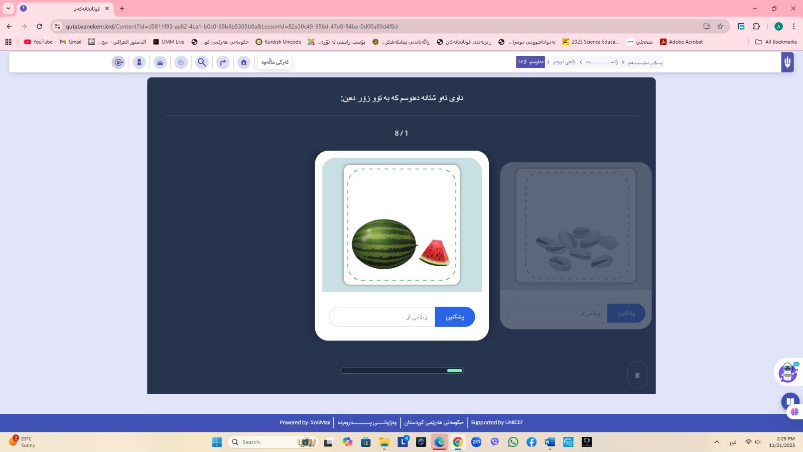 ئاماژهشی بهوهداوه كه "پلاتفۆرمی (قوتابخانهكهم) كه ئێستا سێ پۆلی خوێندنی تهواو كارایه و پۆلهكانی 4 و 5ی بنهڕهتیش لهژێركاركردندان، بۆ كۆتایی ساڵی 2026 ههموو پۆل و قۆناغهكانی خوێندنی بنهڕهتی تهواو دهكرێن، تیمی خۆماڵی و بههاوبهشی رێكخراوی یونسێف ئهنجامی دهدهین، دهبێته وهرچهرخانێكی گرنگی پرۆسهی فێربوون له كوردستان".