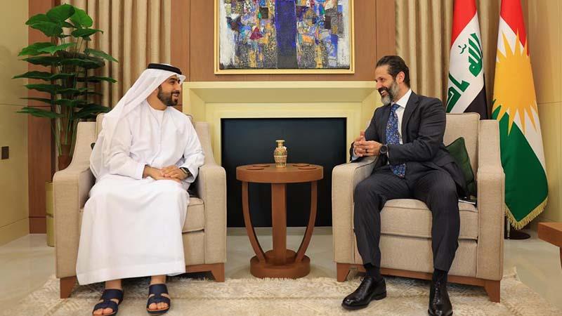 له بهشێكی دیكهی كۆبوونهوهكهدا باس له پهیوهندیی ئابووری و بازرگانی نێوان ئیمارات و ههرێمی كوردستان كرا.