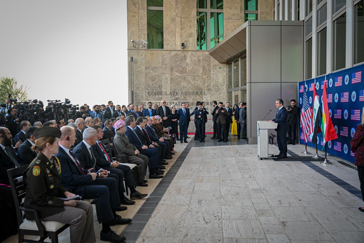 ئهمڕۆ چوارشهممه 12/3، مهسرور بارزانی سهرۆكی حكومهتی ههرێمی كوردستان له رێورهسمی كردنهوهی كۆمهڵگهی نوێی كونسوڵخانهی ئهمریكا له ههولێر وتارێكی پێشكهش كرد و تیایدا رایگهیاند كه:
