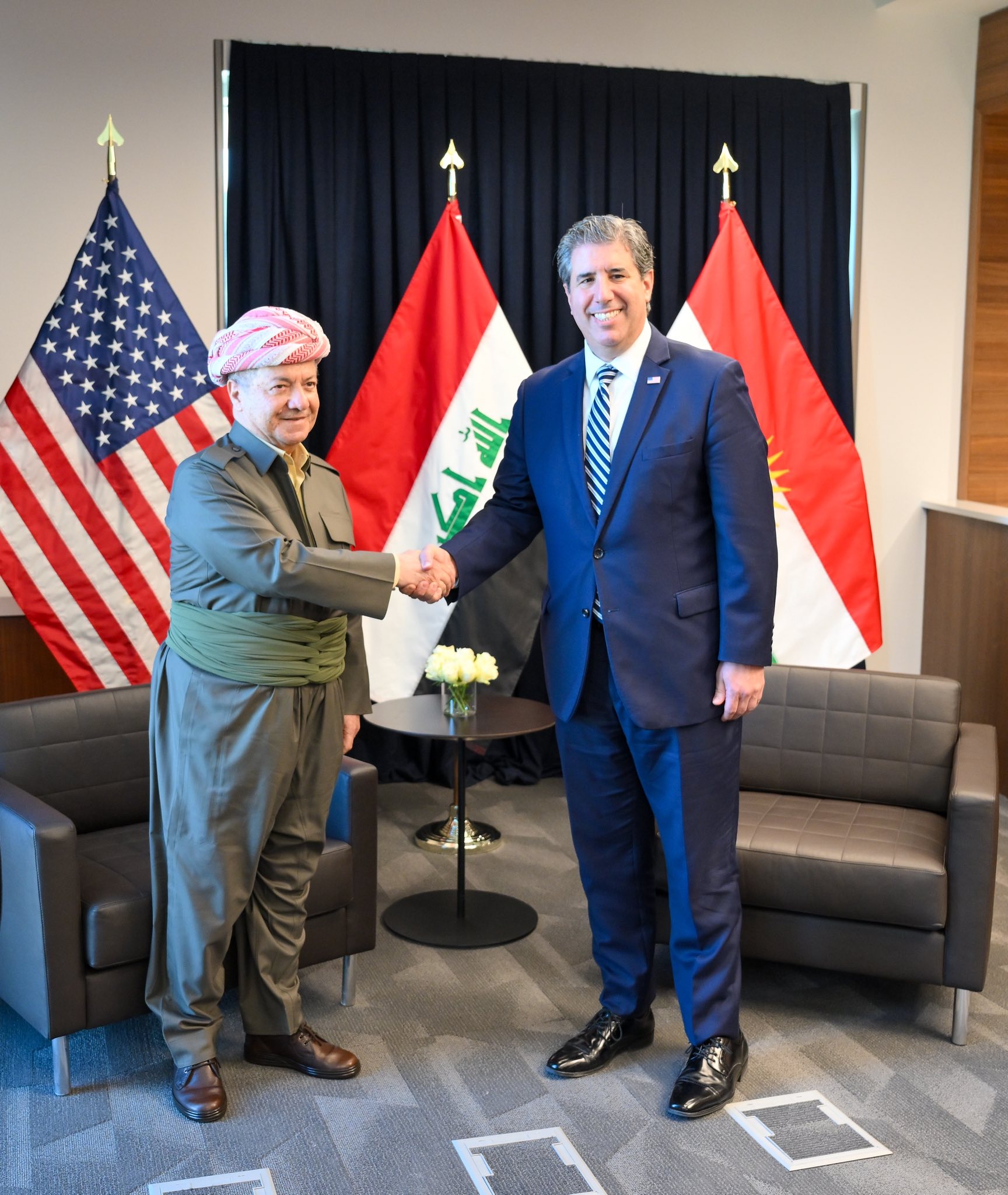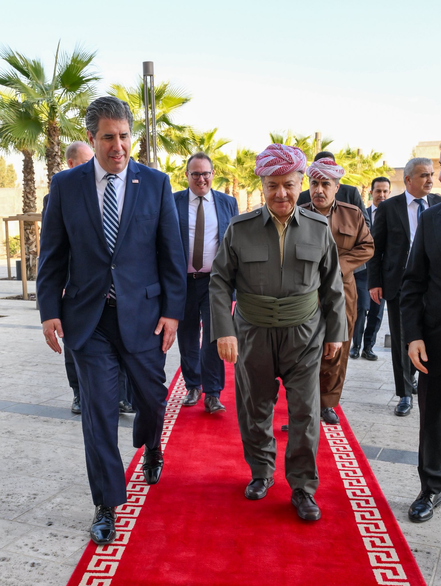 ئهمڕۆ چوارشهممه 3ی كانوونی یهكهمی 2025، مهسعود بارزانی سهرۆكی پارتی دیموكراتی كوردستان له ههولێر لهگهڵ مایكل ریگهس جێگری وهزیری دهرهوهی ئهمریكا و شاندێكی باڵیۆزخانهی ئهمریكا له عێراق كۆبووهوه.