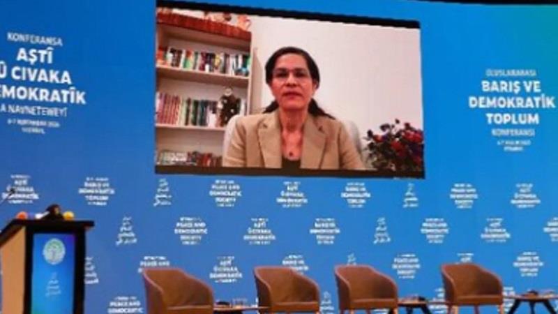 ئیلهام ئەحمەد، بەرپرسی پەیوەندییەکانی دەرەوەی بەڕێوەبەرایەتی خۆسەری باکوور و رۆژهەڵاتی سووریا، لە رێگەی ڤیدیۆ کۆنفرانسەوە بەشداری لە کۆنفرانسێکی ئاشتی لە ئیستەنبوڵ کرد کە لەلایەن پارتی دەم-ەوە رێکخرابوو رایگەیاند، "مشتومڕی پەیوەست بەئاشتی زۆر گرنگە و پڕۆسەی ئاشتی توركیا رەنگدانەوەی لەسەر باكور و رۆژهەڵاتی سوریا و لەسەر ئێمەش هەبووە".