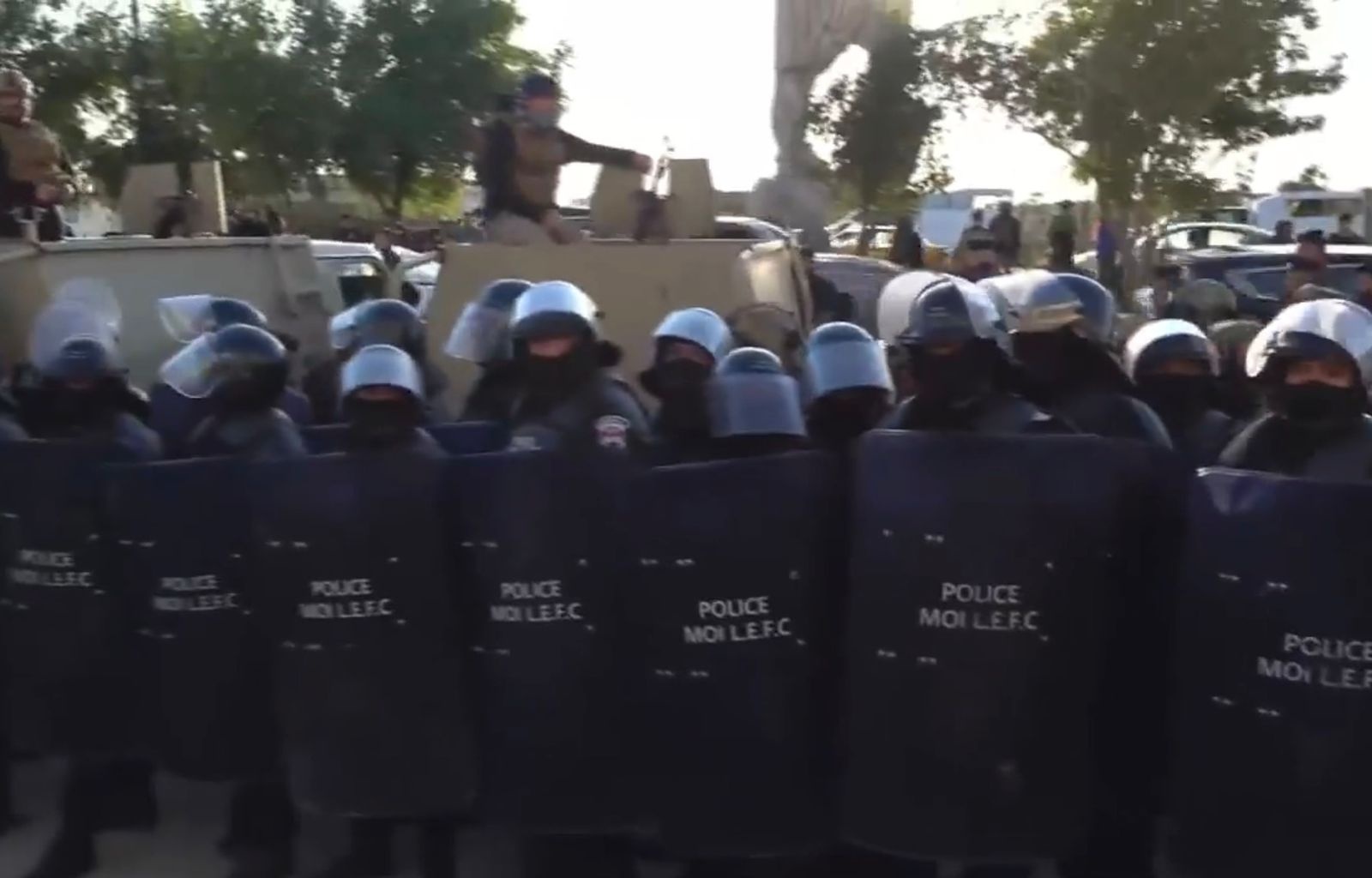 له ئێستاشدا هێزێكی زۆری ئهمنی عێراقی لهبهردهم پهیكهرهكه بڵاوكراونهتهوه بۆ رێگرتن له ههر بارگرژییهك.
