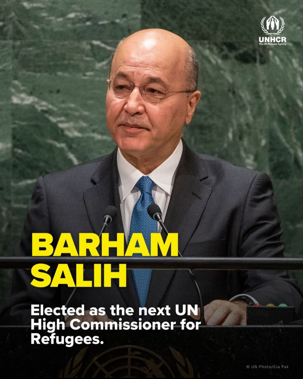 ئهنجومهنی گشتی نهتهوه یهكگرتوهكان بهكۆی دهنگ د. بهرههم ساڵحی ههڵبژارد بۆ كۆمیسیاری باڵای نهتهوهیهكگرتوهكان بۆ كاروباری پهنابهران(UNHCR).