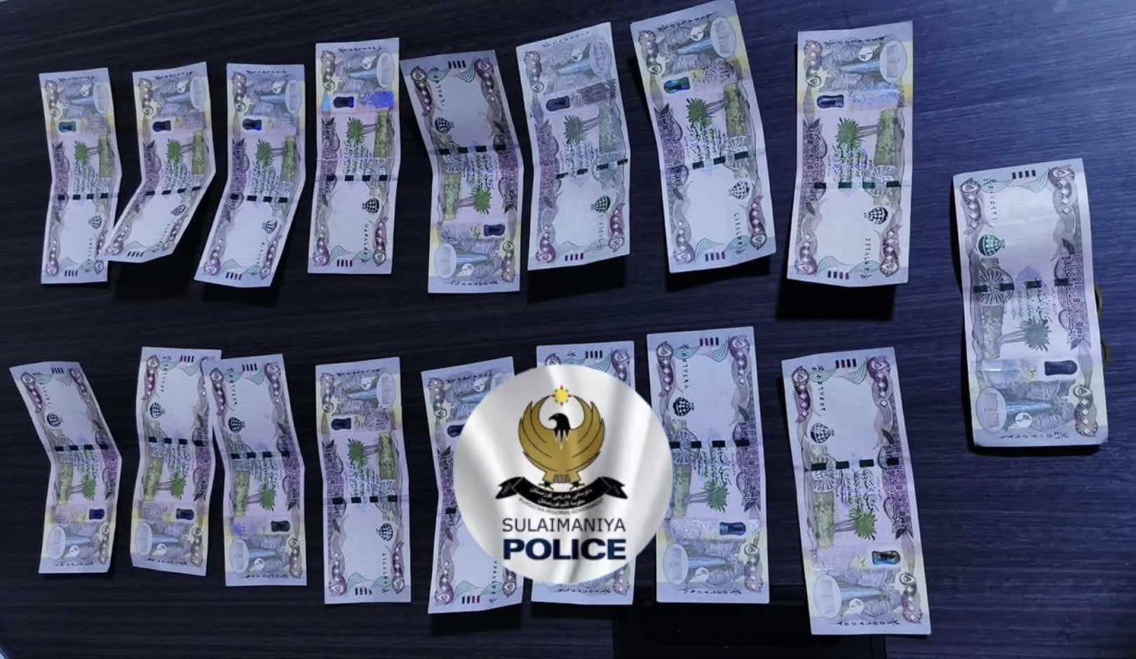 بەڕێوەبەرایەتی پۆلیسی پارێزگای سلێمانی لە راگەیەندراوێكدا بڵاویكردەوە، "مەفرەزەکانی نوسینگەی نەهێشتنی تاوانی سەیدسادقی سەر بە بەشی نەهێشتنی تاوانی بەرێوەبەرایەتیمان تۆمەتبارێکیان دەستگیرکرد کە بڕی 800 هەزار دیناری عێراقی پارەی ساختەکراو (تەزویر)ی پێ بووە".