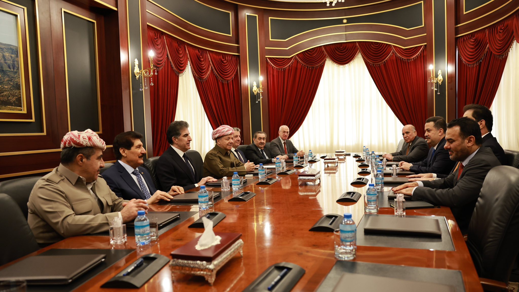 ئهمڕۆ دووشهممه 2ـی شوباتی 2026 مهسعود بارزانی سهرۆكی پارتی له پیرمام لهگهڵ شاندێكی باڵای چوارچێوهی ههماههنگی كۆبۆوه كه پێكهاتبوو له محهمهد شیاع سودانی سهرۆكی هاوپهیمانیی ئاوهدانكردنهوه و گهشهپێدان، هادی عامری سكرتێری گشتیی ڕێكخراوی بهدر، موحسین مهندهلاوی سهرۆكی هاوپهیمانیی ئهساس و عهباس رازی سكرتێری گشتیی چوارچێوهی ههماههنگی.