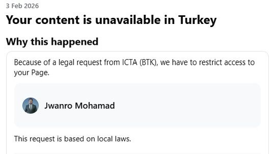 *ئهمڕۆ، دهسهڵاتی تهكنهلۆژیای زانیاری و پهیوهندییهكانی توركیا (ICTA/BTK) پهیجهفهرمییهكهمی لهو وڵاته ڕاگرت و ئاسمانی توركیای به ڕوومدا داخست.