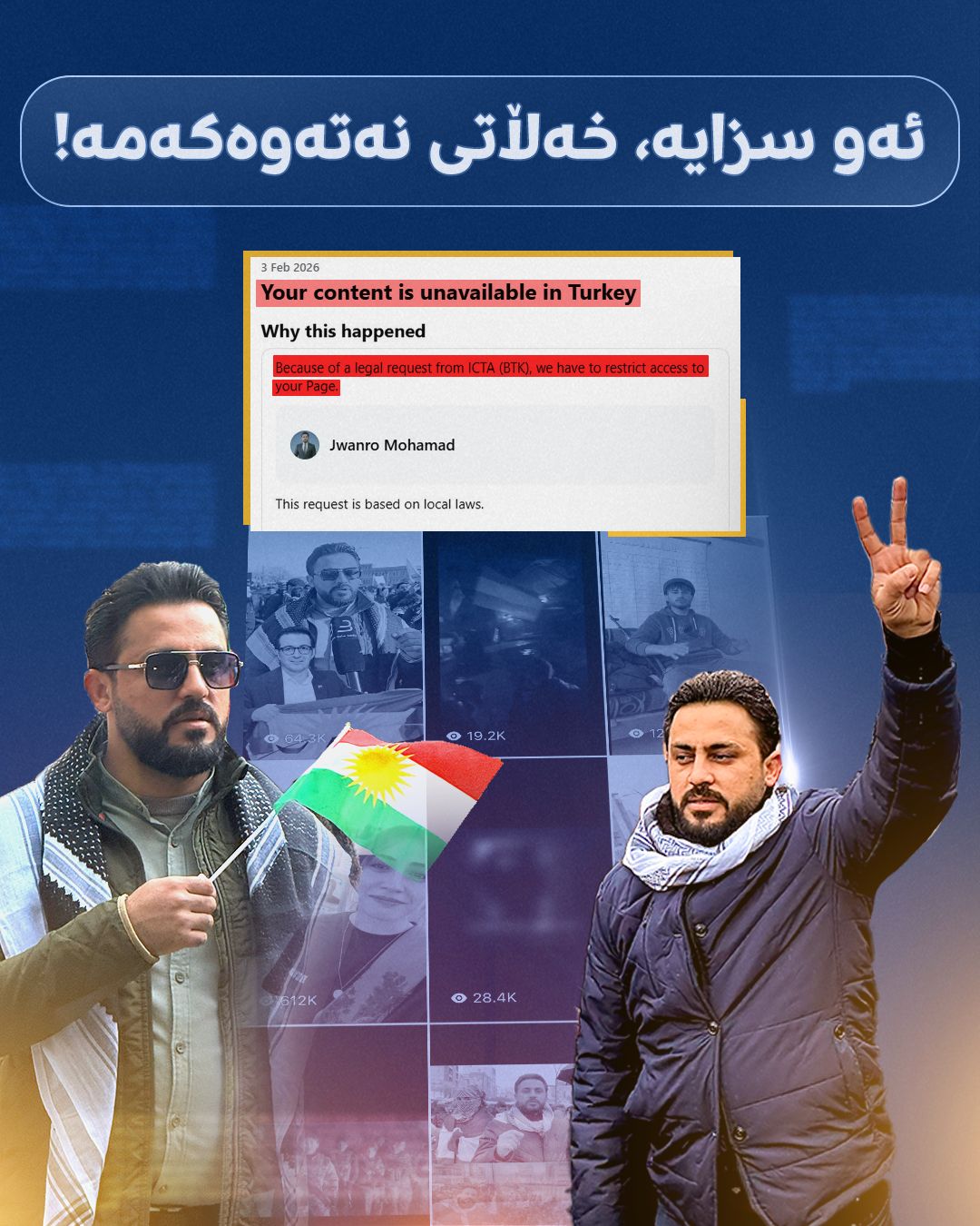 جوانڕۆ محهمهد ئهندامی پهرلهمانی كوردستان لهسهر فراكسیۆنی گۆڕان رایگهیاند كه لهلایهن دهسهڵاتدارانی ئهنقهرهوه پهیجهفهرمییهكهمی لهو وڵاته راگیراوه و ئاسمانی توركیاشی به روودا داخراوه، دهشڵێت: "ئهو سزایه، خهڵاتی نهتهوهكهمه!".