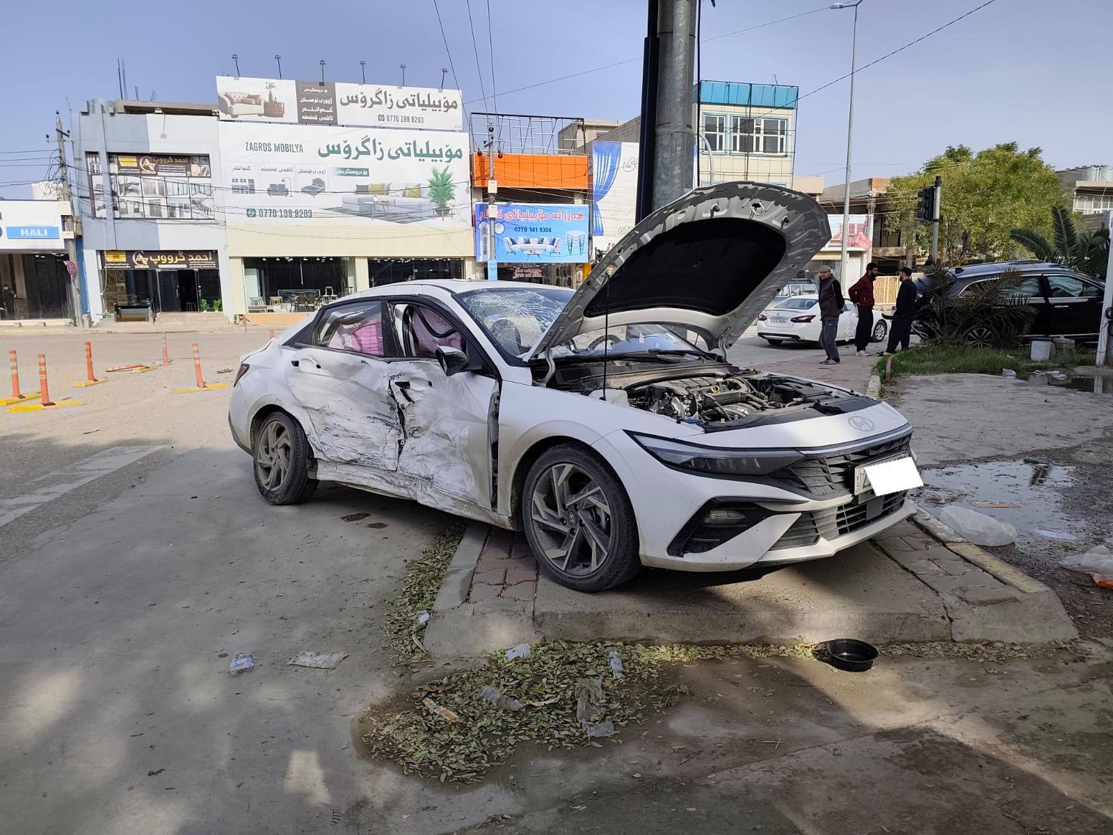 له راگهیهندراوهكهدا هاتووه كه "رووداوی یهكهم له ترافیك لایتی نزیك شارهوانی كهلار روویداوه لهنێوان دوو ئۆتۆمبێلی جۆری (هۆندا ئهلنترا و رینۆ) بههۆیهوه ههر دوو شۆفێرهكه و دوو سهرنشین برینداربوون".