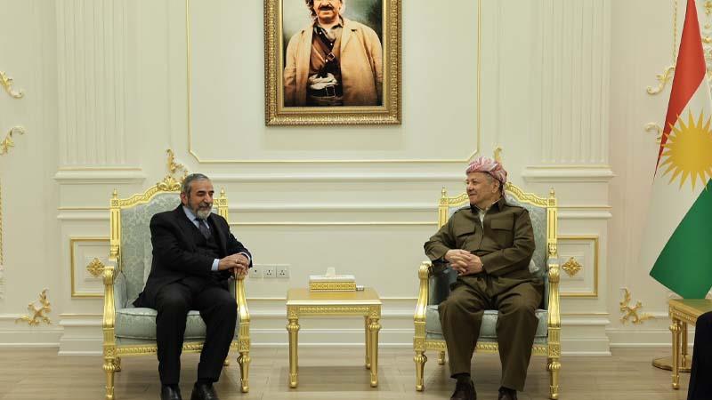 ئهمڕۆ سێشهممه 10ی ئاداری 2026 مهسعود بارزانی سهرۆكی پارتی دیموكراتی كوردستان پێشوازی له سهڵاحهدین بههادین ئهمینداری گشتیی یهكگرتووی ئیسلامیی كوردستان كرد.