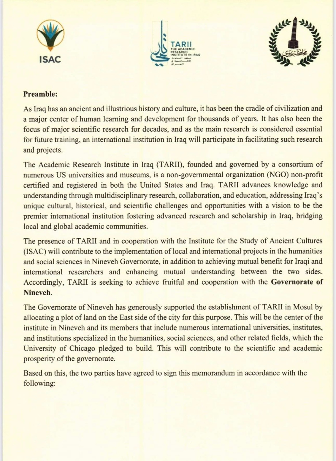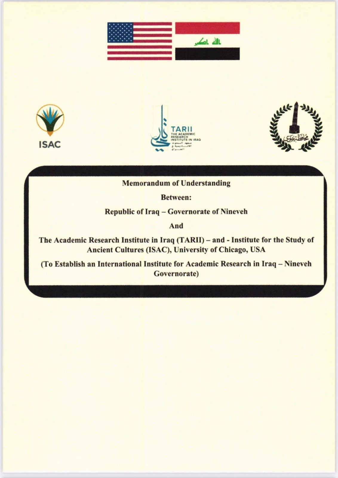 "بەشانازی و خۆشییەكی گەورەوە، گەرمترین پیرۆزبایی ئاڕاستەی خەڵكی نەینەوا دەكەین بۆ واژۆكردنی یاداشتی لێكتێگەیشتنی مێژوویی لەگەڵ ئەمریكا بۆ دروستكردنی ناوەندێكی توێژینەوەی نێودەوڵەتی لە ناوەڕاستی موسڵ، ئەو شارەی پێگەی راستەقینەی خۆی بەدەست دەهێنێتەوە لە گۆڕەپانی جیهاندا. ئەم هەنگاوە بنیاتنەرە پاڵنەرێكی بەهێزە بۆ پتەوكردنی هاوكاری هاوبەش و بەرزكردنەوەی ناوی موسڵ لە نێو شارە پێشەنگەكاندا و وێناكردنی پاشەڕۆژێكی گەش و پێشكەوتووه بۆ نەوەكانی داهاتوو".
