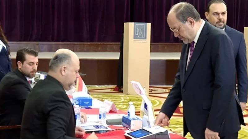 نوری مالیكی سهرۆكی هاوپهیمانی دهوڵهتی قانوون له بنكهی تایبهت له شاری بهغدا دهنگی دا.