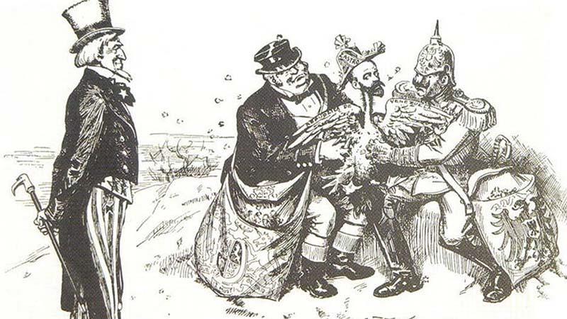 لهو رۆژگارهدا سهرۆكی ئهو كاتی ئهمریكا تیۆدۆر رۆزفێڵت، به تهواوهتی ئاگاداری دۆخهكه بوو و دهیزانی چی روودهدات. ههر به گوێرهی پرنسیپی مۆنرۆ، سهرۆكی ئهمریكا هیچ ناڕهزایهتییهكی نهبووه، لهوهی وڵاتانی ئهوروپی، بۆ وهرگرتنهوهی شایسته داراییهكانیان، گورزی سهربازی له ڤهنزوێلا بووهشێنن، مادام ئهو دهستوهردانه، نابێته هۆی لێكههڵوهشاندنهوهی خاكی ڤهنزوێلا. بهم هۆیهوه، ئهمریكا، دوای وهرگرتنی گرنتی ئهوروپییهكان، له بهرامبهر ئهم قهیرانهی ڤهنزوێلا، بێلایهنی ههڵبژارد.