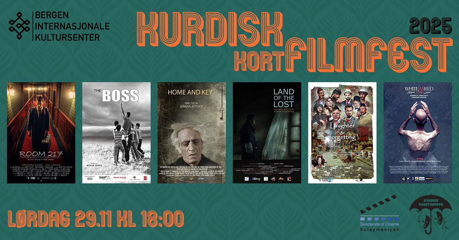 بۆ ساڵی دووەم لە شاری بیرگن لە وڵاتی نەرویج دیداری کورتە فیلمی کوردی رۆژی شەممە 29ی تشرینی دووەمی 2025 کاتژمێر 6:00ی ئێوارە، لە هۆڵی (international Kultur senter) نمایش دەکرێت، کارەکە بە هاوبەشی نێوان گروپی هونەری کوردی و (international kultur senter) و بەڕێوەبەرایەتی رۆشنبیری سلێمانی بەشی هونەری سینەما دەکرێت.