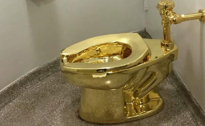 کۆمەڵەی "سۆزبیس" تایبەت بە مەزاد ئاشکرای کردوە لە فرۆشتنێکی ئاشکرادا تەوالێتێک دروستکراو لە زێڕی بێ خەوش بۆ فرۆشتن نمایش دەکەن کە کاری دەستی هونەرمەندی ئیتاڵی"ماوریستیۆ کاتیلان"ە بەناوی "ئەمەریکا".