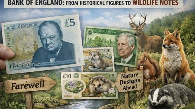 ژیانی کێوی خەریکە بە شێوەیەکی ڕاستەوخۆ دەگەڕێتەوە بۆ سەر ڕووی دراوەکانی بەریتانیا، ئەمەش دوای ئەوەی بانکی ناوەندیی ئینگلتەرا ڕایگەیاند کە زنجیرەی داهاتووی بانکۆتەکان لە کەسایەتییە مێژووییەکانەوە بەرەو وێنەی ئەو ئاژەڵانە دەچێت کە لە سروشتی خودی بەریتانیاوە وەرگیراون.