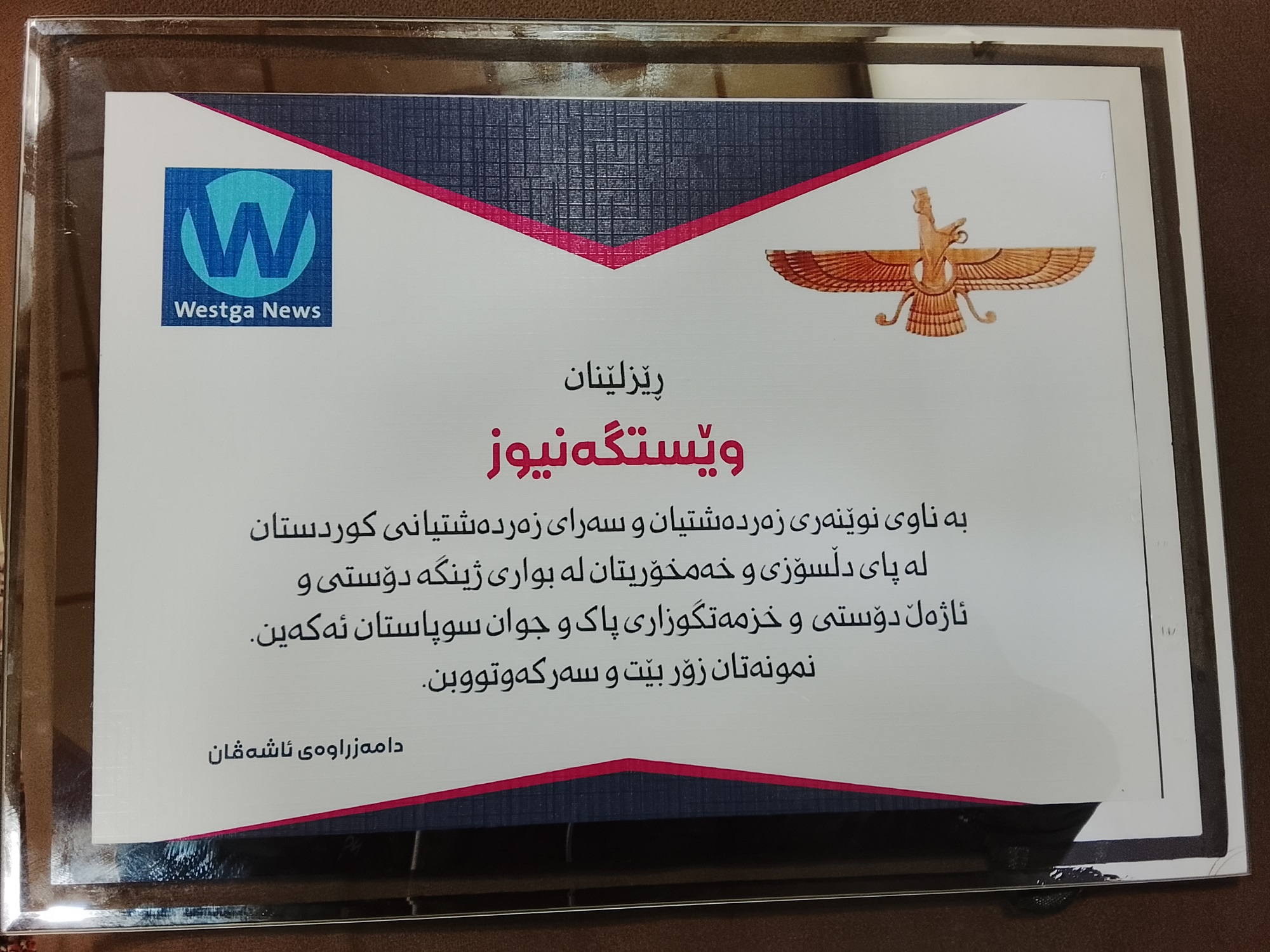 ثمنت ممثلة الديانة الزرادشتية في اقليم كردستان آوات حسام الدين طيب موقف Westga news(المحطة نيوز) والمشرف على القسم العربي محمد فاتح اثناء تهديدها باغتيالها بواسطة طائرة مسيرة.