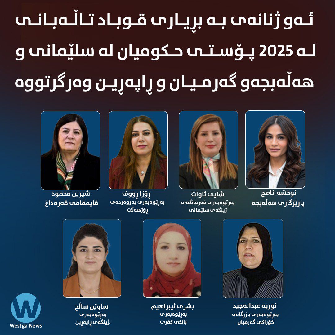 شایی ئاوات بەڕێوبەری فەرمانگەی ژینگەی سلێمانی لەپۆستێکیدا لەتۆڕی کۆمەڵایەتی فەیسبوک دوو گرافیکی بڵاوکردۆتەوە کەیەکەمیان وێنەی ئەو حەوت ژنەیە کە لەساڵی 2025 پۆستی باڵایان لە سلێمانی و هەڵەبجەو گەرمیان و ڕاپەڕین وەرگرتووە دووەمیشیان وێنەی پێنج ژنە پەرلەمانە دەرچووەکەی شاری سلێمانییە.
