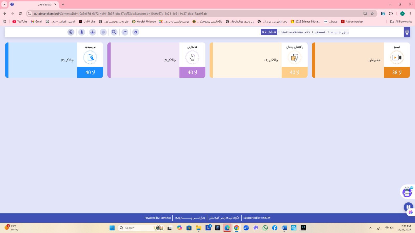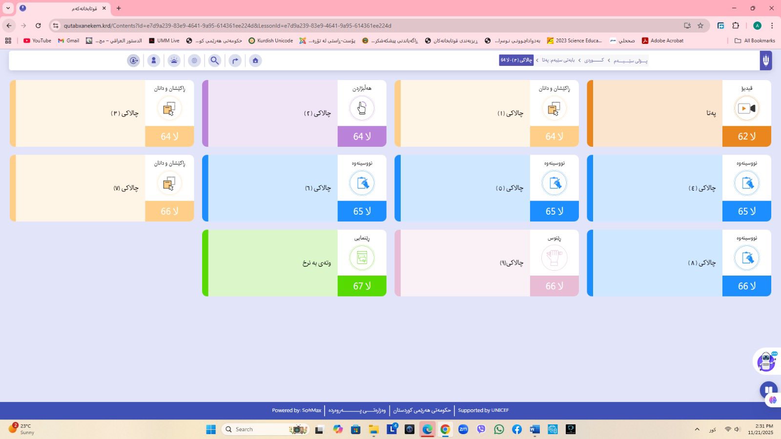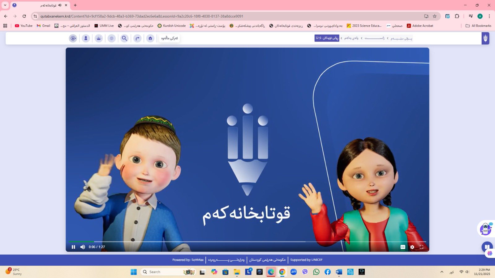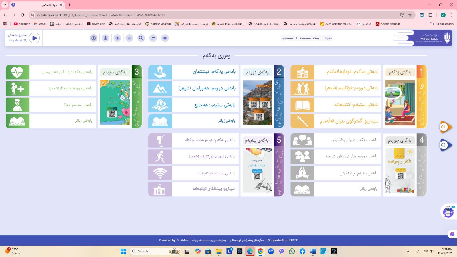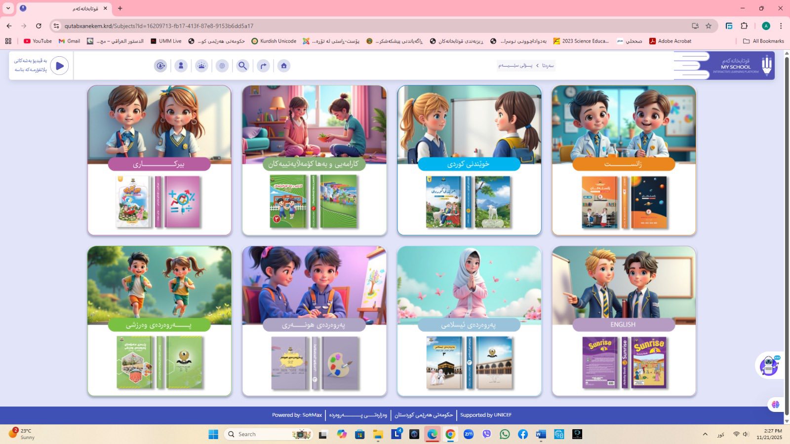 ئاماژهشی بهوهداوه كه "پلاتفۆرمی (قوتابخانهكهم) كه ئێستا سێ پۆلی خوێندنی تهواو كارایه و پۆلهكانی 4 و 5ی بنهڕهتیش لهژێركاركردندان، بۆ كۆتایی ساڵی 2026 ههموو پۆل و قۆناغهكانی خوێندنی بنهڕهتی تهواو دهكرێن، تیمی خۆماڵی و بههاوبهشی رێكخراوی یونسێف ئهنجامی دهدهین، دهبێته وهرچهرخانێكی گرنگی پرۆسهی فێربوون له كوردستان".