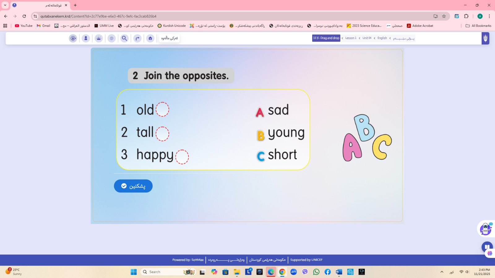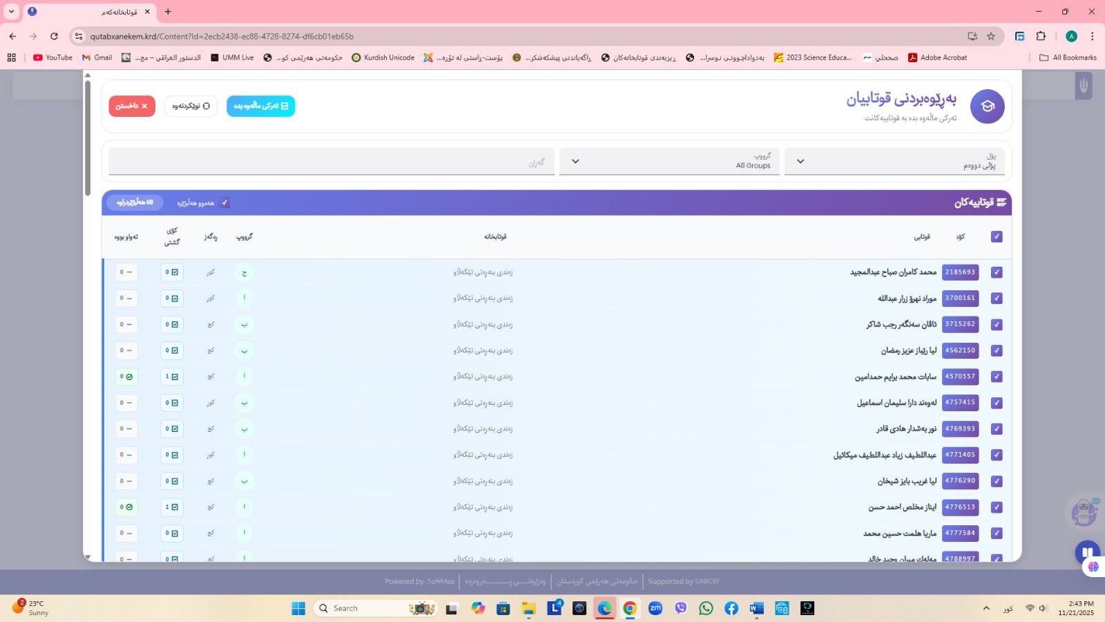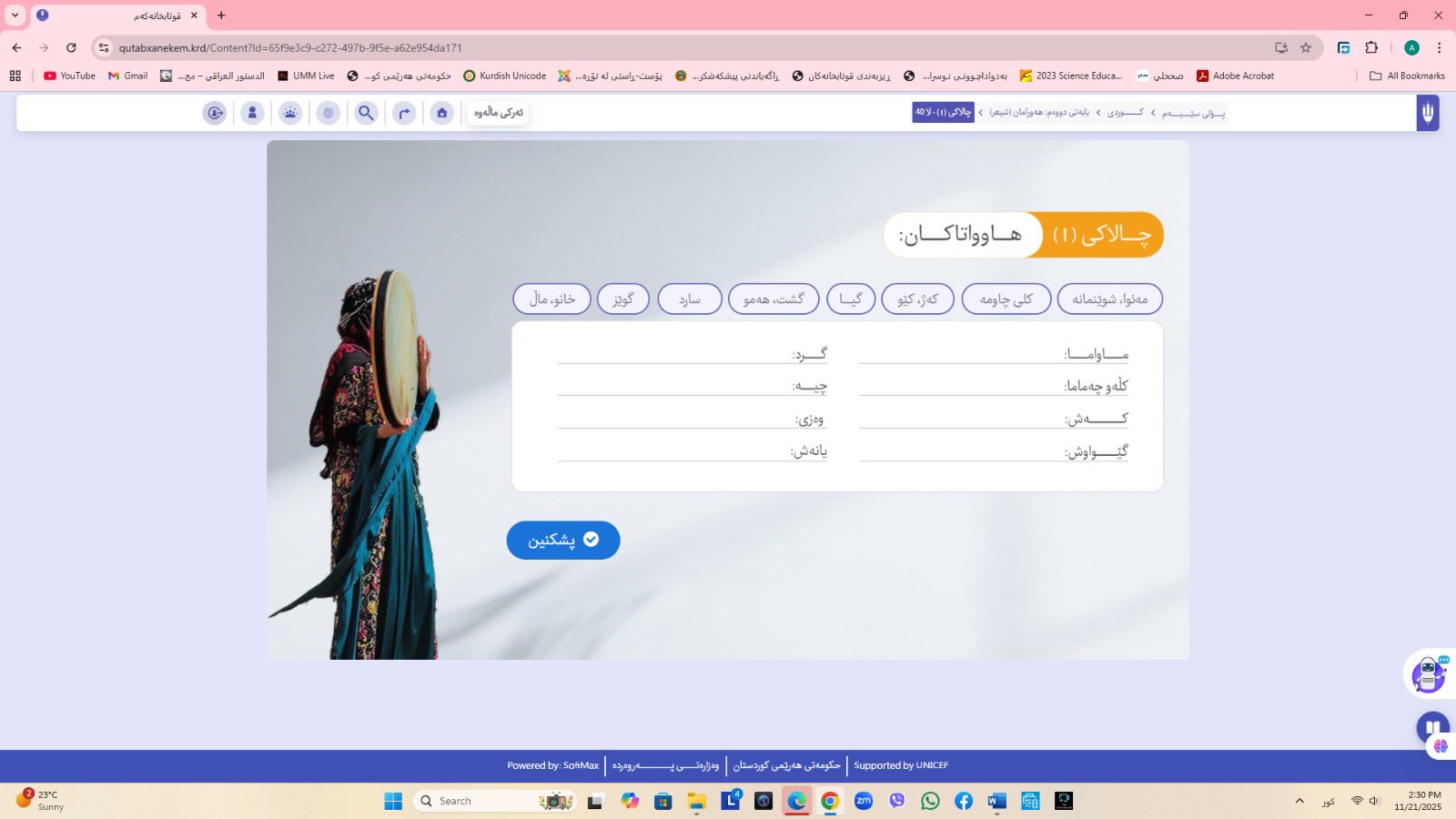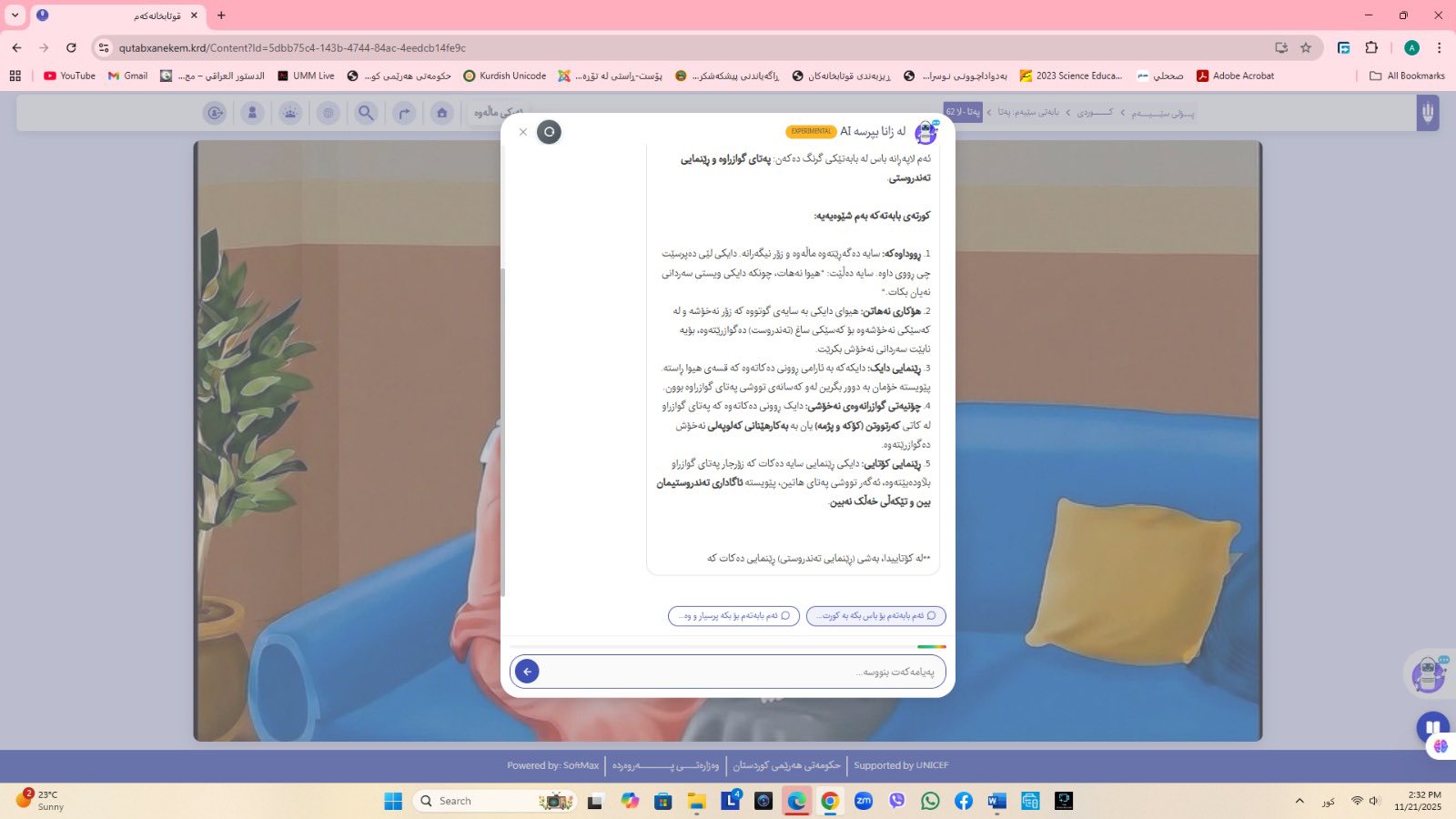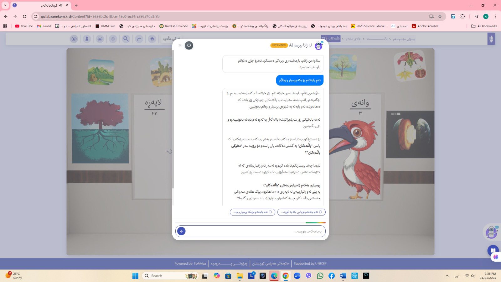 ئاماژهشی بهوهداوه كه "پلاتفۆرمی (قوتابخانهكهم) كه ئێستا سێ پۆلی خوێندنی تهواو كارایه و پۆلهكانی 4 و 5ی بنهڕهتیش لهژێركاركردندان، بۆ كۆتایی ساڵی 2026 ههموو پۆل و قۆناغهكانی خوێندنی بنهڕهتی تهواو دهكرێن، تیمی خۆماڵی و بههاوبهشی رێكخراوی یونسێف ئهنجامی دهدهین، دهبێته وهرچهرخانێكی گرنگی پرۆسهی فێربوون له كوردستان".