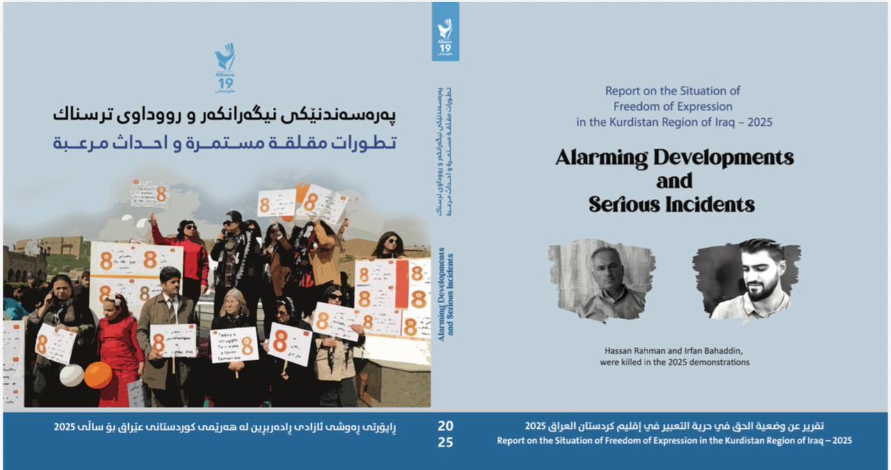 1- راپۆرتەکە دەربارەی مافی ئازادی رادەربڕینە كە بۆ یەكەمین جار تۆڕی هاوپەیمانی19 ئامادەی دەكات و چاودێری سەدان ناڕەزایەتی كردووە (خۆپیشاندان، مانگرتن، گردبوونەوە)، تیشكی خستووەتە سەر شێواز و جۆر و شوێنی خۆپیشاندانەكان بە ژمارە و شێوازی مامەڵەی هێزە ئەمنییەكان لەگەڵ ناڕەزایەتی هاوڵاتیان و ژمارەی كوژراو بریندار و دەستگیركراوی ئەو چالاكیانە، لە هەموو شارەكانی هەرێمی كوردستان.