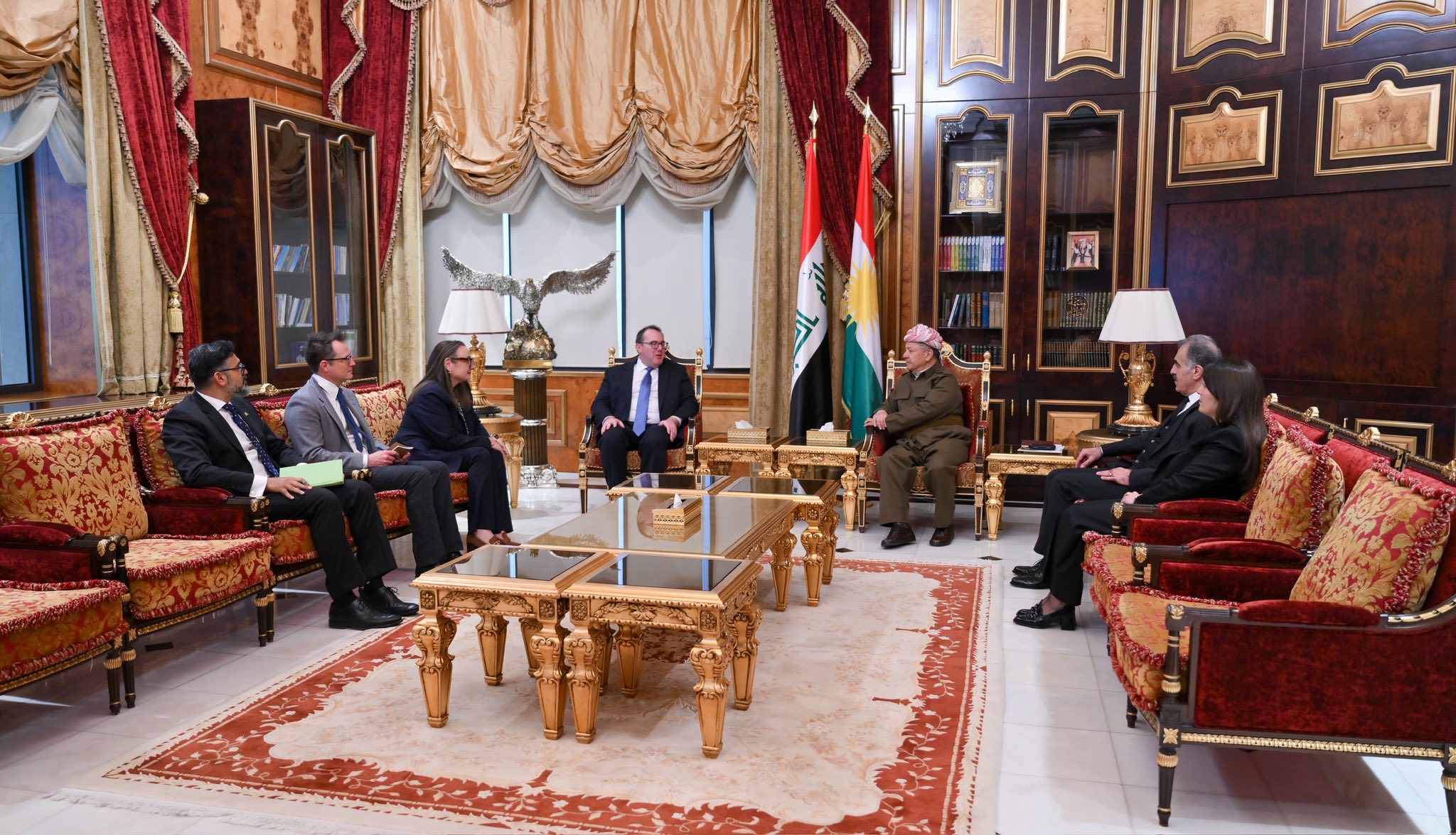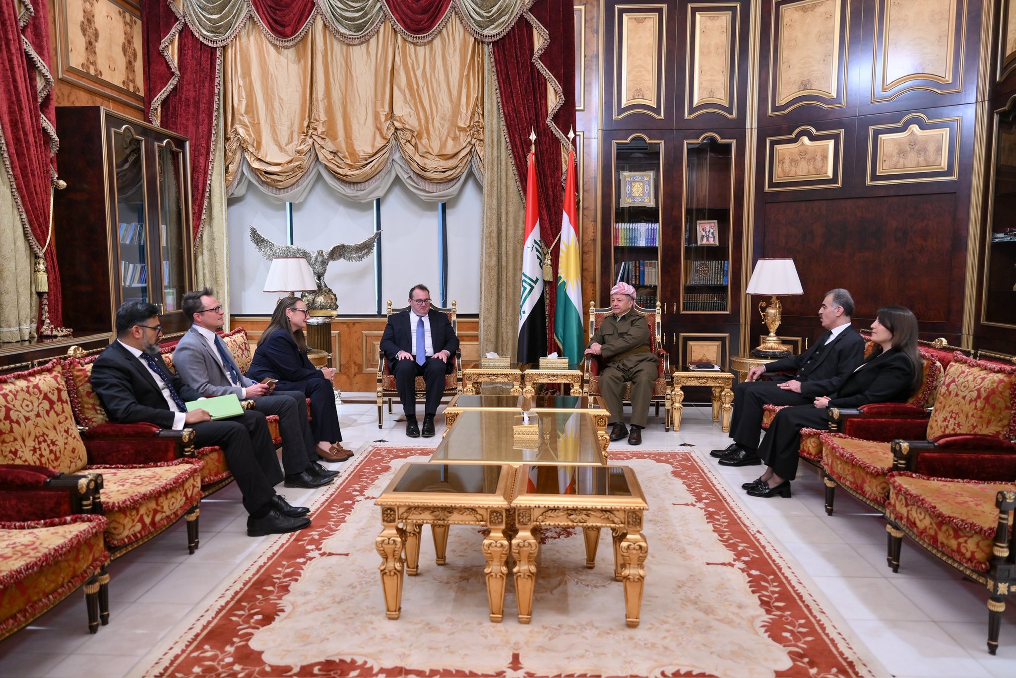 لای خۆیهوه، بارزانی وێڕای بهخێرهێنانی شاندی میوان، پیرۆزبایی ساڵی تازهی لێ كردن.