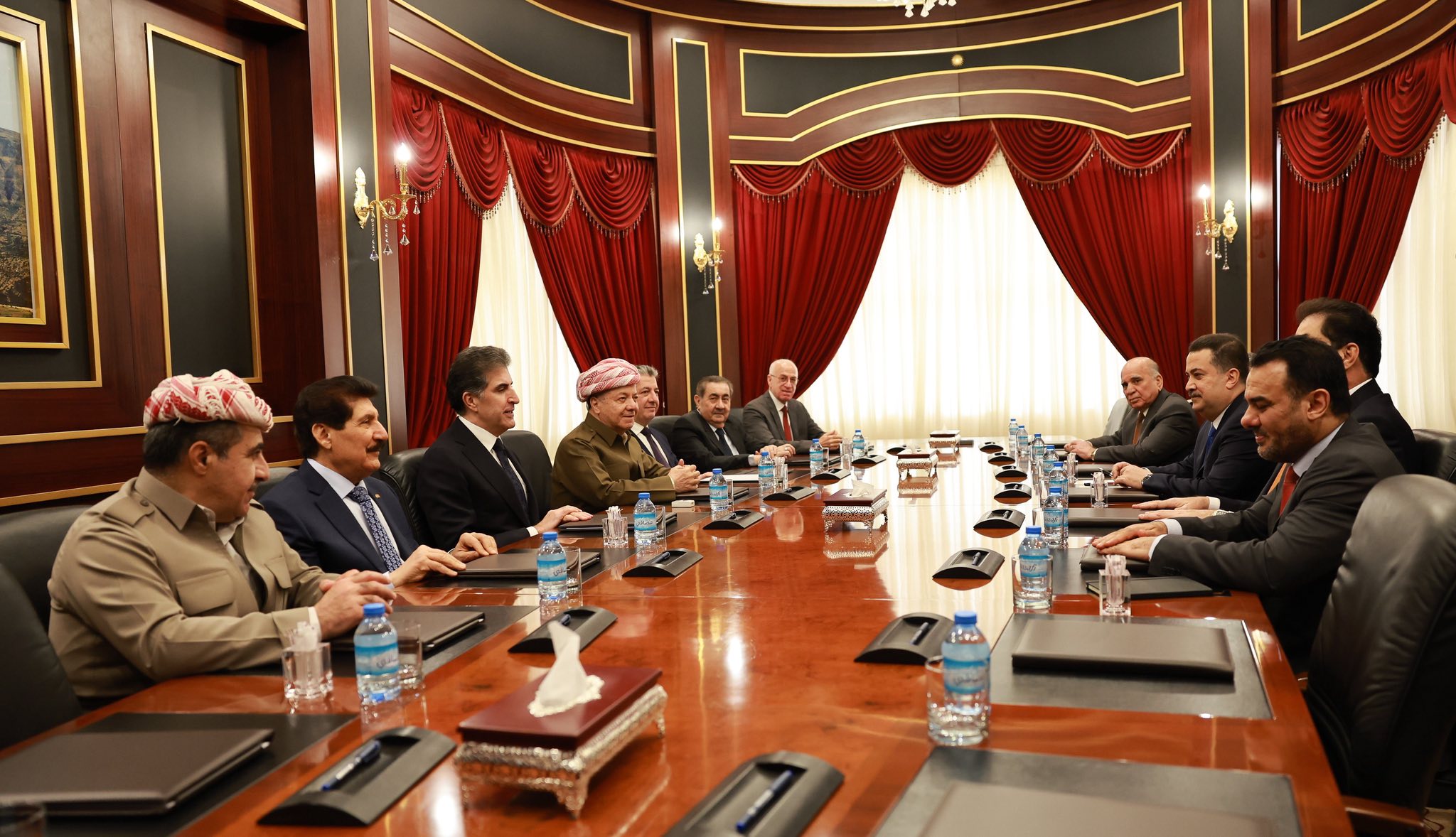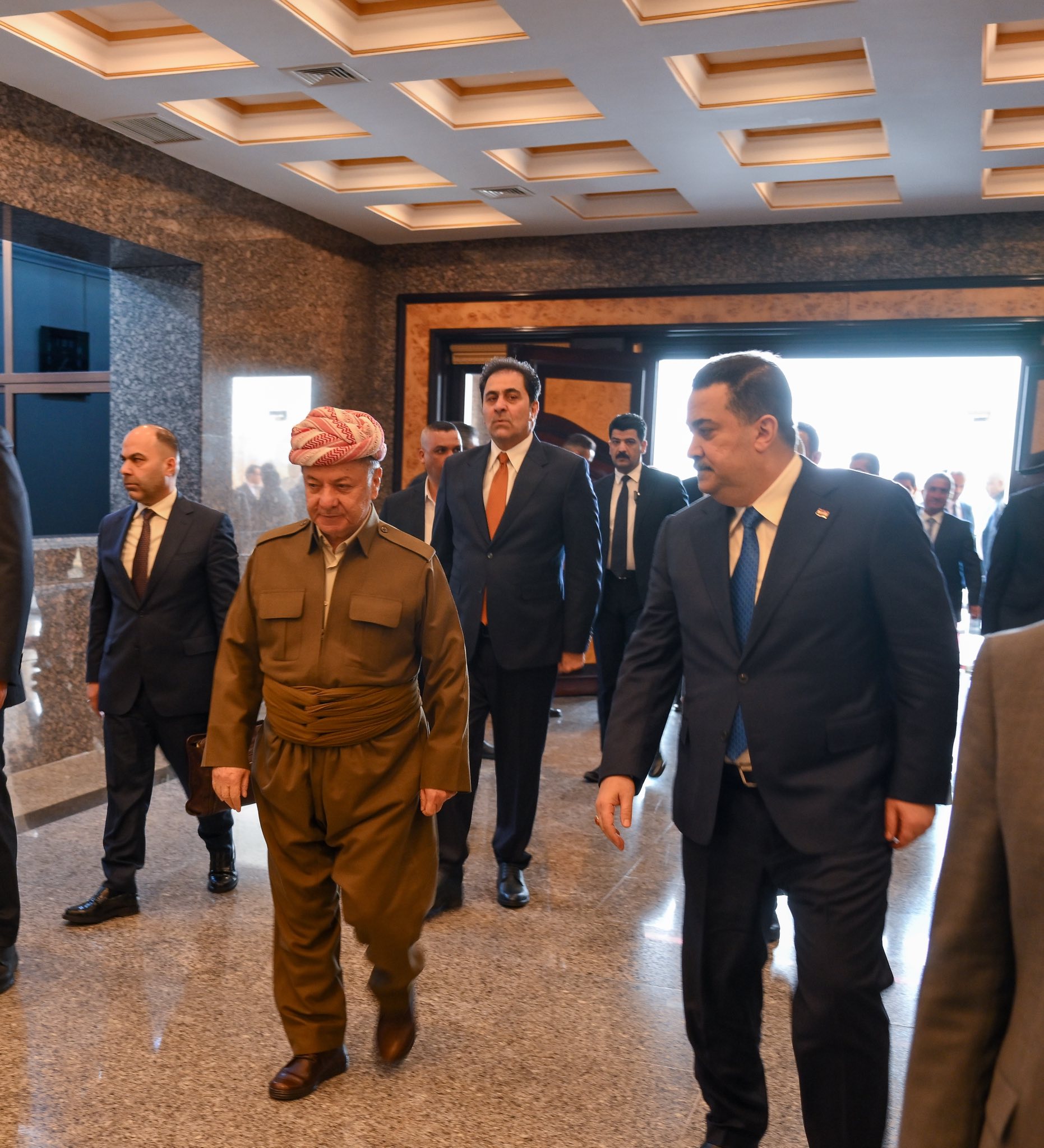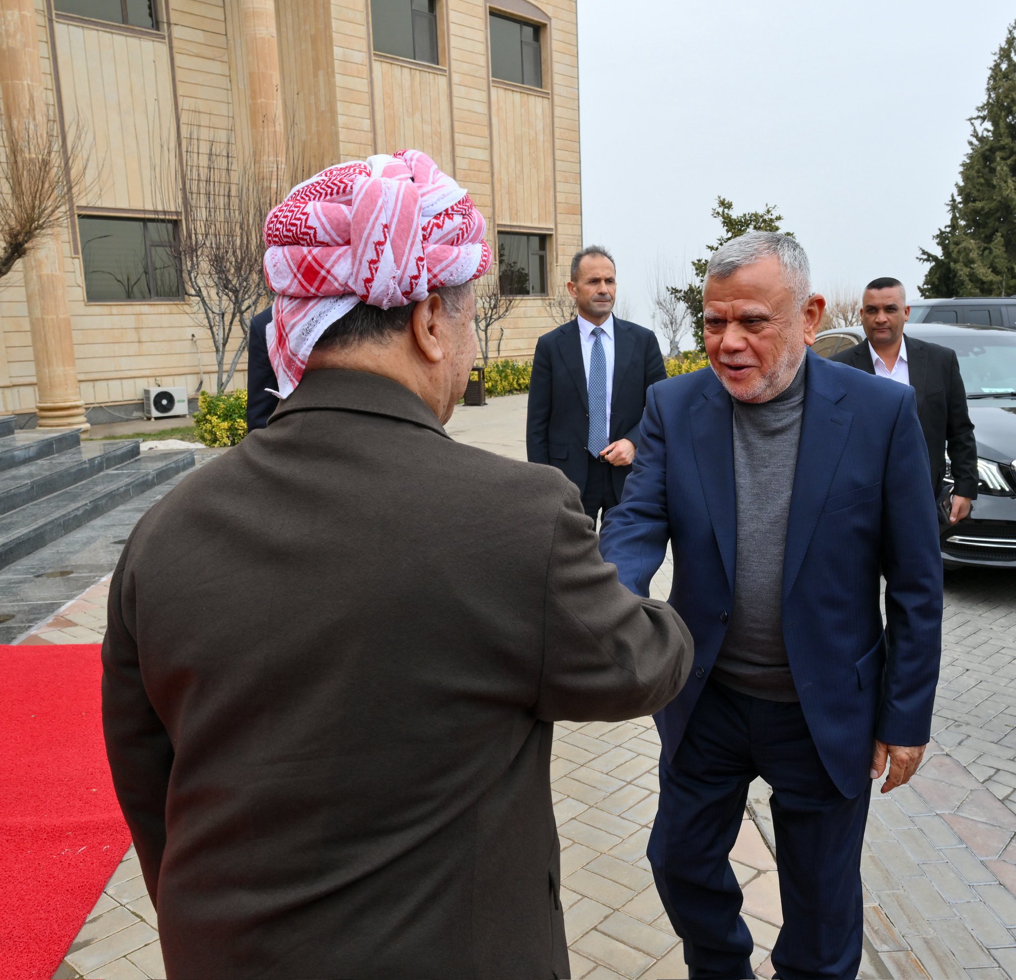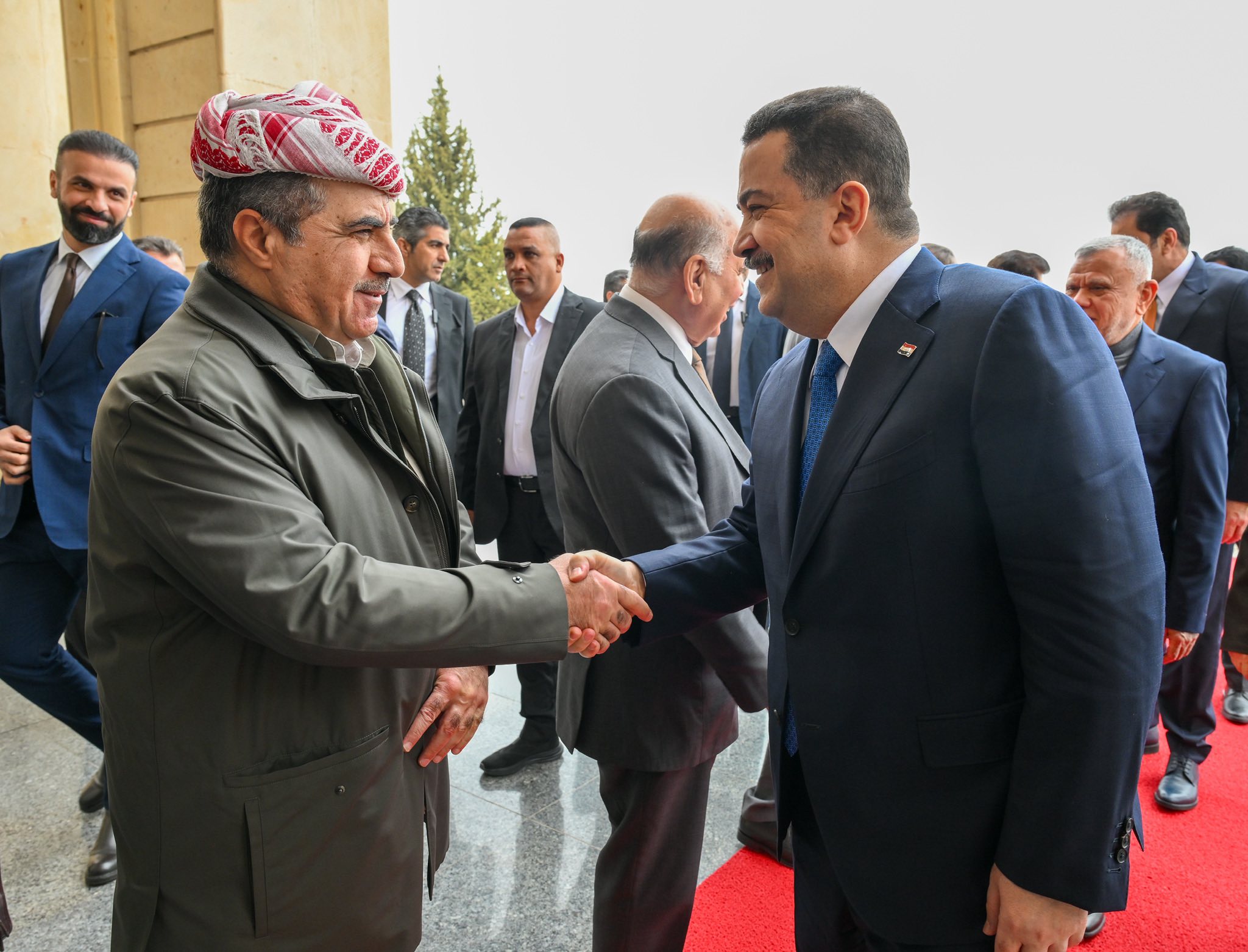 ئهمڕۆ دووشهممه 2ـی شوباتی 2026 مهسعود بارزانی سهرۆكی پارتی له پیرمام لهگهڵ شاندێكی باڵای چوارچێوهی ههماههنگی كۆبۆوه كه پێكهاتبوو له محهمهد شیاع سودانی سهرۆكی هاوپهیمانیی ئاوهدانكردنهوه و گهشهپێدان، هادی عامری سكرتێری گشتیی ڕێكخراوی بهدر، موحسین مهندهلاوی سهرۆكی هاوپهیمانیی ئهساس و عهباس رازی سكرتێری گشتیی چوارچێوهی ههماههنگی.