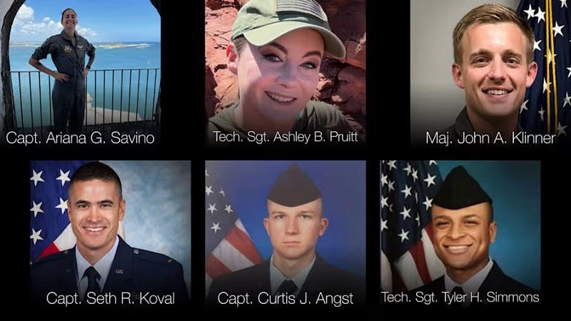 لە راگەیەندراوەکەدا پێنتاگۆن هاتووە، هەر شەش کوژراوەکە ئەندامی تیمی فڕۆکەیەکی جۆری (KC-135)ی تایبەت بە سووتەمەنیپێدانی ئاسمانی بوون، کە بریتین لە: