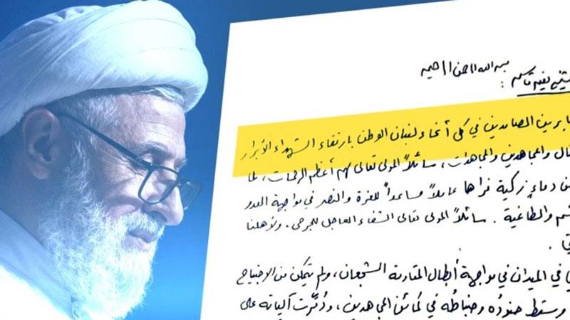 قاسم پهیامهكهی بهوه كۆتایی پێهێنا كه ههڕهشهكانی ئیسرائیل، مقاوهمه ناترسێنێت و ستایشی ورهی ئاوارهكان و خۆڕاگرانی كرد و به قهڵغانێكی پتهو وهسفی كردن كه سهروهری لوبنان، دهپارێزن و داگیركهر دهردهكهن و دوپاتی كردهوه سێیانهی سوپا، گهل، مقاوهمه، تاكه گهرهنتییه بۆ گێڕانهوهی كهرامهتی نیشتمانی.