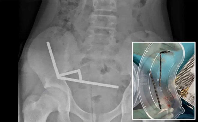 لەڕێی وێنەی تیشکەوە دەرکەوتووە موگناتیسەکان لەناو گەدەی گەنجەکەدا یەکیان گرتووە و چوار هێڵی ڕێکیان دروستکردووە، هێزی موگناتیسەکە بۆتە هۆی شیبونەوەی بەشێک لە شانەی ڕیخۆڵە ئەستورە و باریکەی، پاش نەشتەرگەری و 8 ڕۆژ مانەوە لە نەخۆشخانە نەخۆشەکە گەڕاوەتەوە ماڵەوە.